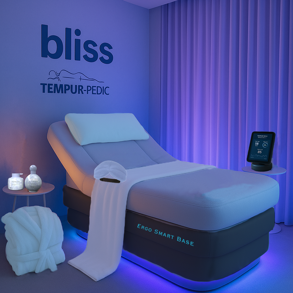 FSC Merchandising Case Study. Tempur-Pedic and Bliss Spa are partnering together to merge cutting edge sleep tech with sensorial spa rituals to create a multi sensorial, fully immersive sleep experience. This collab reinforces and positions both brands as more than luxury service providers into holistic sleep ecosystem leaders. Tapping into the rise of ritualized beauty and sleep routines, this collab fills the white space where sleep, wellness and emotional ritualization meet.